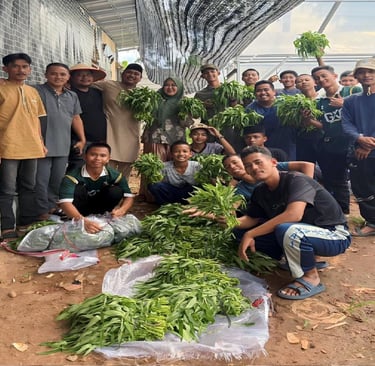 Kegiatan ini tidak hanya berorientasi pada hasil panen, tetapi juga pendidikan karakter, kemandirian, dan keterampilan wirausaha bagi santri.
