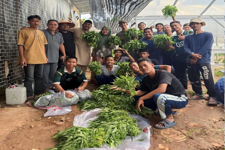 Ketahanan pangan merupakan salah satu aspek penting dalam mendukung kemandirian lembaga pendidikan, termasuk pondok pesantren. Ponpes Muhammad Al Fatih berupaya mewujudkan kemandirian tersebut melalui program budidaya tanaman kangkung secara hidroponik, sebagai langkah inovatif dan ramah lingkungan untuk memenuhi kebutuhan pangan santri.
